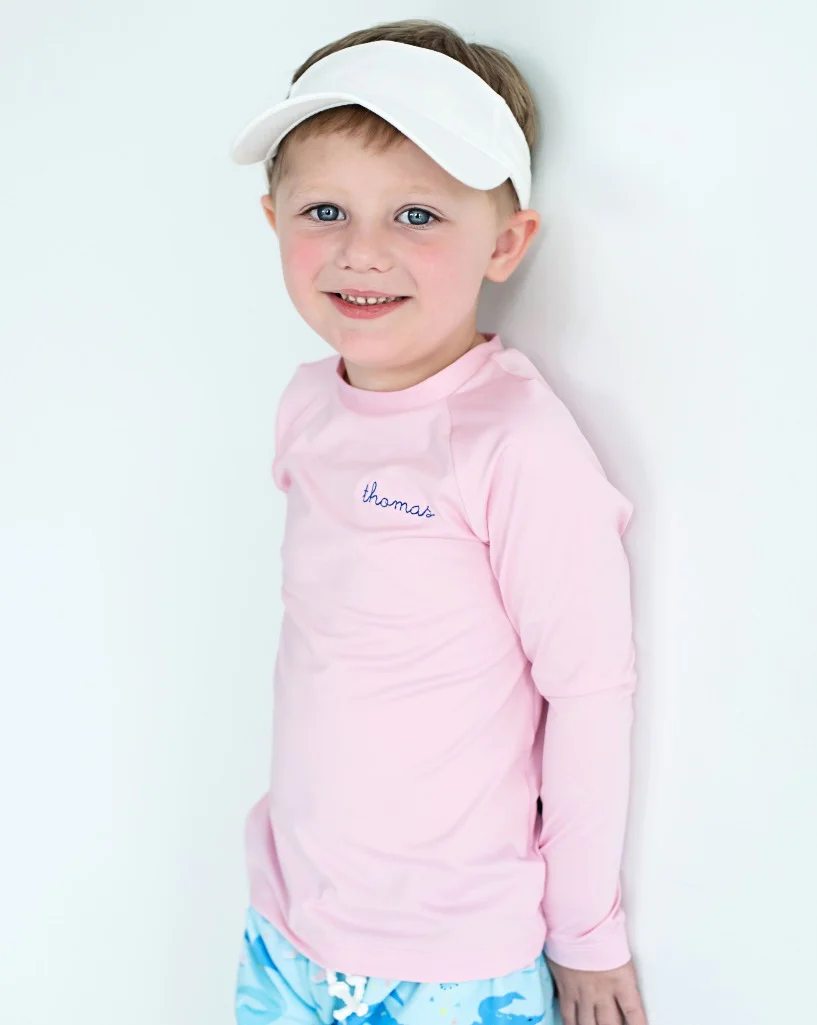 Our Rash Guard Long Sleeve in Pale Pink provides excellent protection and warmth. This water wear is made of compact knitted fabric that guards your child from the sun's rays, the cold, and scratching. Add a personal touch with a name or monogram. UPF50+